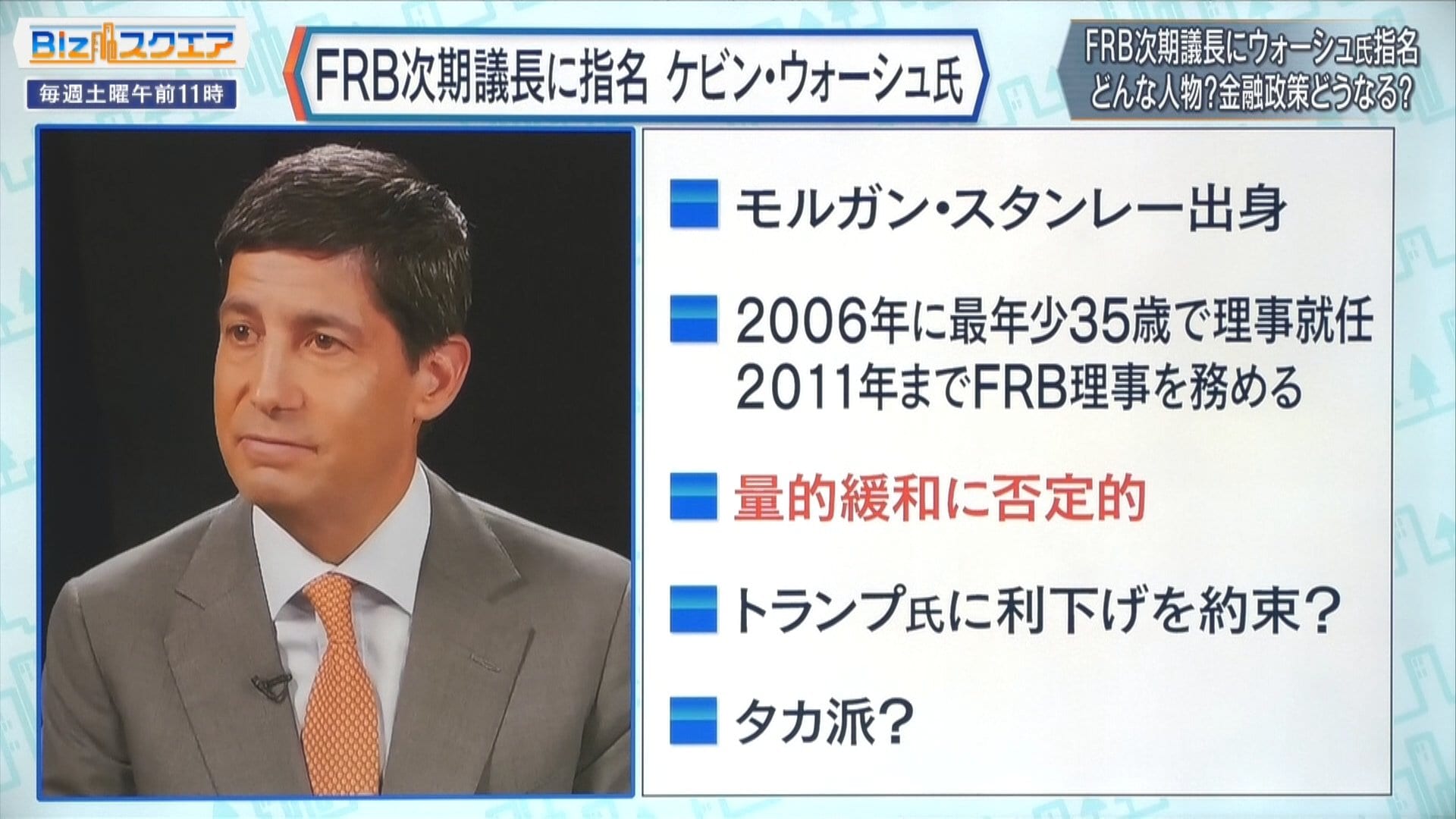 ウォーシュ氏は金融大手のモルガン・スタンレー出身で、2006年に当時史上最年少の35歳でFRB理事に就任した経歴を持つ。かつてはFRBの量的緩和を批判していて、資産の縮小などFRBの改革を訴えている。