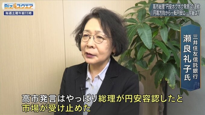 番組の相場予想でおなじみの三井住友信託銀行の瀬良さんも、市場は「総理の円安容認」と受け止めたと話す。