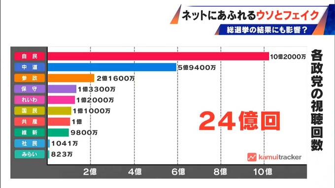 選挙中に相次いでいた偽情報の発信。民間の調査会社によると、今回の衆院選関連のYouTube動画の視聴回数は、実に24億回あまりに達しました。その半分近くが自民党という結果に。