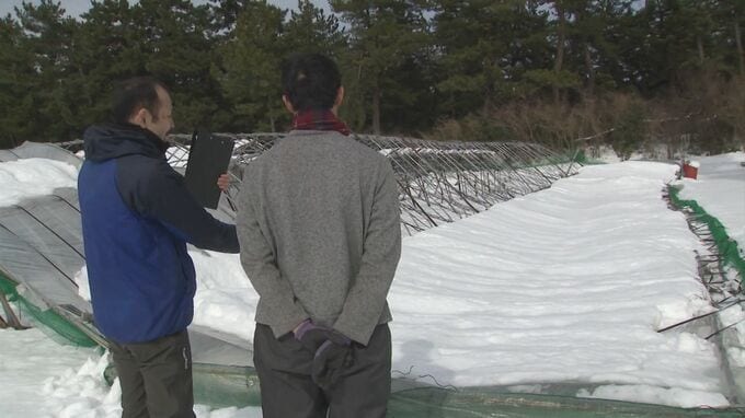 3つあるビニールハウスのうち新品種などを育てるためのハウスが雪の被害を受けました。