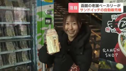 JR函館駅に函館の老舗ベーカリーのサンドイッチが手軽に楽しめる自動販売機が登場しました。麻原衣桜記者「JR函館駅です。お土産店のすぐ横に新たな自販機が登場しました。中をのぞくと色とりどりのサンドイッチが…