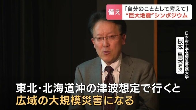 また、日本赤十字北海道看護大学の根本昌宏教授は、真冬に地震や津波が起きた時、低体温症など避難生活で多発する病気について事前の対策を訴えました。