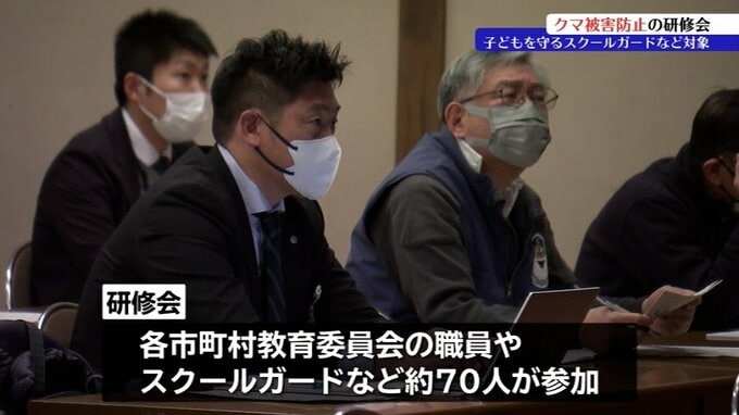 子どもの見守り活動を行うスクールガードなど、教育に関わる人を対象にしたクマの生態を学ぶ研修会が岩手県滝沢市で行われました。