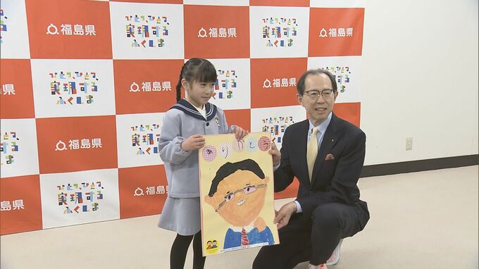 2月14日のバレンタインデーを前に、子どもたちが福島県の内堀知事にチョコレートと似顔絵を贈りました。