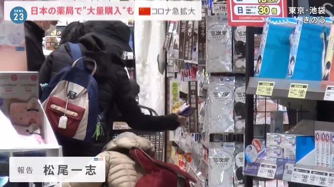 12月20日、東京都内のドラッグストアでは、日本に住む中国人が風邪薬などを大量に購入していました。
