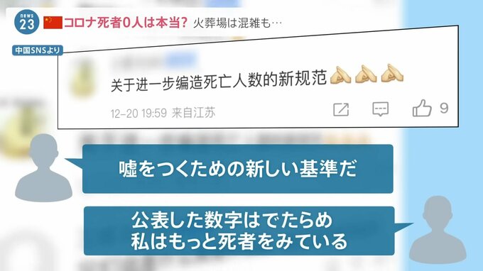 中国のSNS上では、政府が死者の数を少なく見せかけていると批判が高まっています。