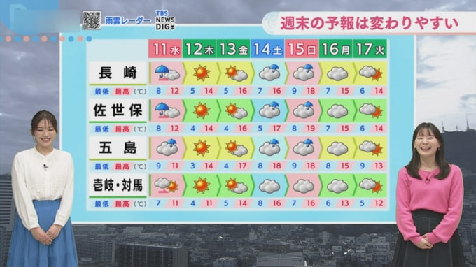 週間予報では土日ともに雨マークがついていますが、「場所が少しでもずれると、雨の予報がガラッと変わる可能性がある」と指摘しています。特に、長崎ランタンフェスティバルの皇帝パレードや媽祖行列などのイベントが予定されている週末については「前日ぐらいまで最新の情報を確認するようにしてください」と呼びかけています。なお週末の気温は高く、最高気温は20度近くまで上がる見込みです。お出かけ予定のある方は、最新の天気情報をチェックしながら準備を進めましょう。