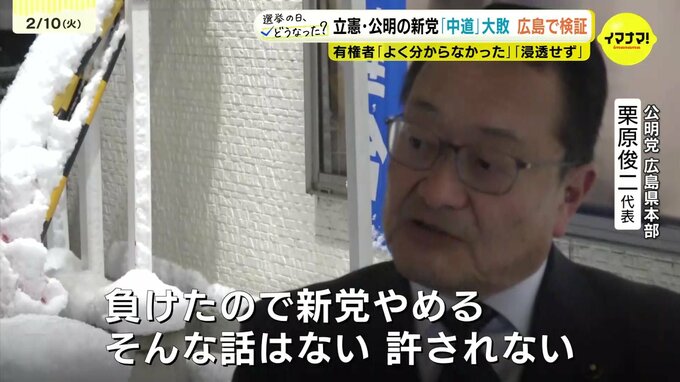 今回の衆議院選挙では、立憲民主党と公明党が立ち上げた新党「中道改革連合」が自民党と対峙しましたが、大敗しました。広島での中道の選挙戦を検証します。