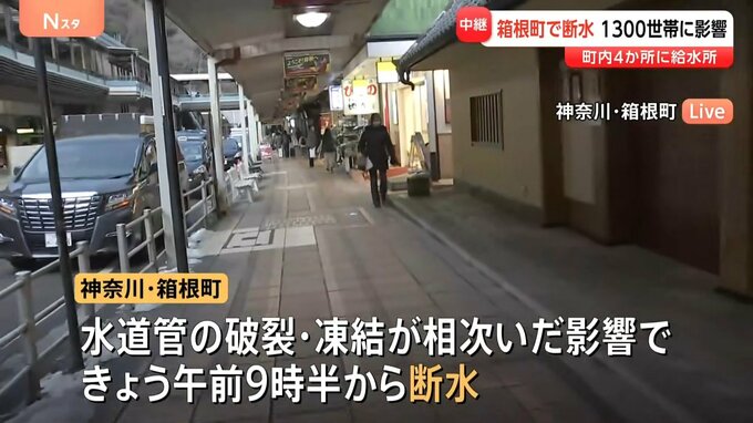 神奈川県箱根町によりますと、強い寒波の影響で水道管の凍結や破裂が相次ぎ、きょう午前9時半から断水が続いているということです。