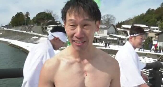 初参加の若衆「初めて経験した神事、五穀豊穣を祈って竹を割らせていただきました。