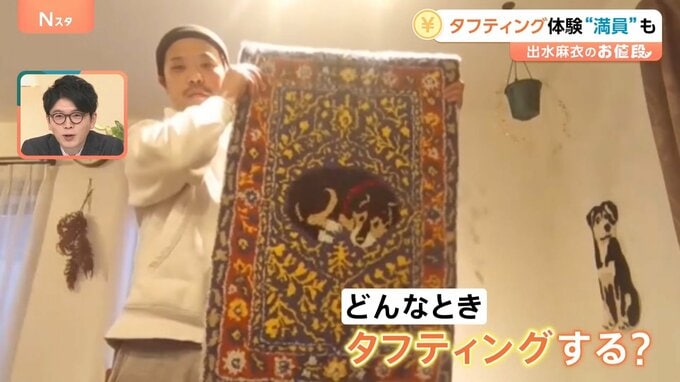 布に毛糸を打ち込み、絵や模様を描く「タフティング」。初心者でも本格的なラグが作れるということで、タフティング体験は満員だということです。その魅力に迫ります。