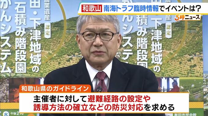 もし南海トラフ地震臨時情報が出されたらどうするのか?和歌山県がガイドラインを公表しました。 おととし8月、宮崎県の日向灘で地震が発生し、気象庁は「巨大地震注意」の臨時情報を発表。和歌山県内では、白浜…