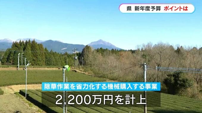 輸出で鍵となるのが付加価値の高い有機栽培のお茶です。しかし、有機栽培は除草作業が手間となることから、省力化する機械の購入に県は2200万円を計上しました。