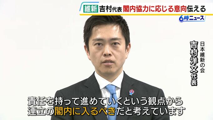 日本維新の会の吉村洋文代表は、高市早苗総理から閣僚を出すよう要請があったと明かし、応じる意向を伝えたと話しました。 日本維新の会の吉村洋文代表は2月10日、9日の夜に高市総理から電話で「次の内閣改造…
