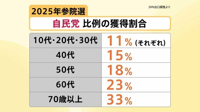 【2025年参院選 自民党比例の獲得割合】※JNN出口調査より