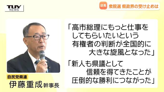 自民党県連の伊藤重成幹事長は今回の選挙を、「高市総理にもっと仕事をしてもらいたいという有権者の判断が全国的に大きな旋風となった。新人も県議として信頼を得てきたことが圧倒的な勝利につながった」と振り返りました。