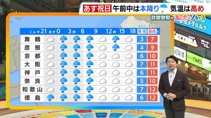 2月11日(水・祝)建国記念の日の近畿地方は、午前を中心に本降りの雨。久しぶりのまとまった雨で、これまで雨の少なかった太平洋側にとっては恵みの雨にもなりそうです。 日本付近を低気圧が発達しながら進む…
