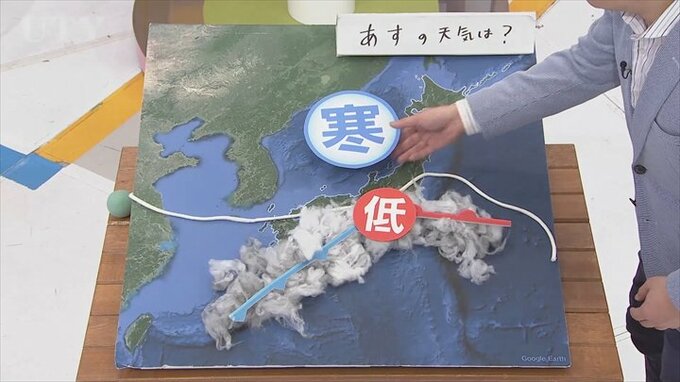 あすは、この南岸低気圧が陸地に結構近い形で進んでいきます。そうなると低気圧は反時計回りに風が吹きますので、温かい空気を持ってくるんです。