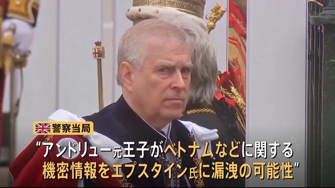 さらに、警察当局は国王の弟・アンドリュー元王子が、貿易特使として訪問したベトナムやシンガポールなどに関する機密情報を、エプスタイン氏に漏洩していた可能性があるとして調査を始めています。