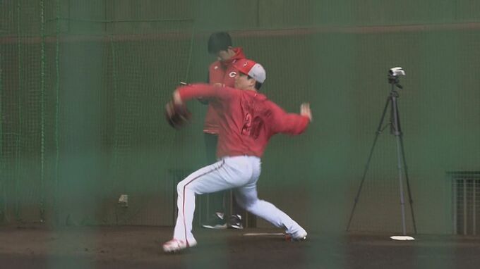 紅白戦に登板する見通しの大瀬良は、ストレートを中心に、変化球も全球種を織り交ぜて50球を投げました。