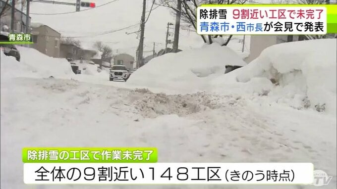 青森市 全体の9割近い148工区で除排雪作業が未完了 うち小柳地区や八重田地区周辺など5つの工区は著しく作業の進ちょくが悪い状況 西秀記 市長は対応強化の考え示す 青森テレビ 2026年2月10日(火) 21:42 国内