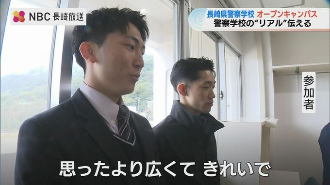 長崎県警察学校のオープンキャンパスは、去年7月に続き2回目で、高校生や大学生25人が参加しました。