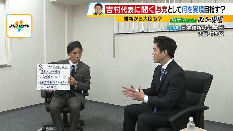 ―――維新が強くアクセルを踏んでいきたいとしている政策は▽議員定数削減、▽社会保険料の引き下げ、▽食料品の消費税2年間ゼロ、▽副首都、の4つですが、どの政策をいつ頃までに実現したいですか?