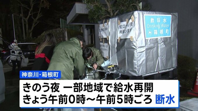 寒波などの影響で大規模な断水が起きた神奈川県箱根町では、臨時の給水所が設置されるなど対応が取られました。きょうは断水にはならない見通しです。箱根町では強い寒波の影響で水道管の漏水や凍結が相次ぎ、水を…