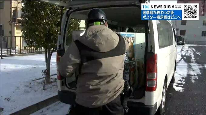自民党の圧勝に終わった衆議院選挙から一夜が明けた9日、仙台市の宮城野区役所では、ポスター掲示板の撤去作業が行われていました。作業員が手際よくねじを回して掲示板を取り外し、車の中に積み込んでいきます。
