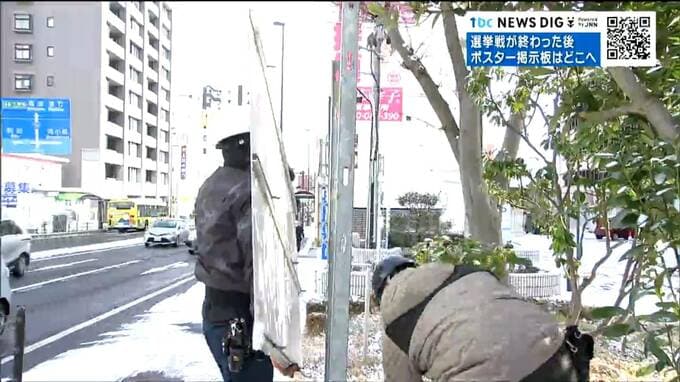 宮城県選挙管理委員会によりますと、選挙のポスターや看板などについて公職選挙法では、設置した候補者の陣営が速やかに撤去するよう求めています。と言うことは、掲示板の候補者ポスターも、本来なら陣営のスタッフが速やかにはがす必要がありそうですが…、「実は違う」と、選挙管理委員会の担当者は話します。