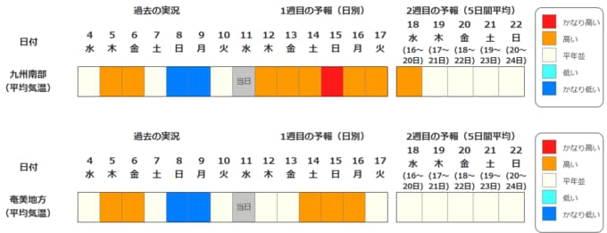 九州南部・奄美地方は15日頃から