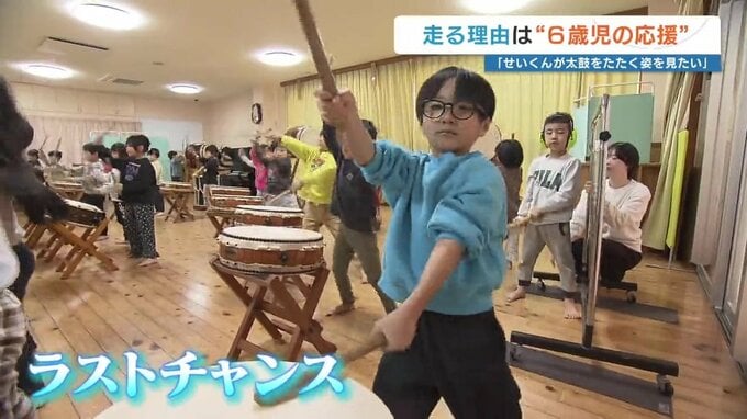 彼の通う子ども園では6年前から、和太鼓でランナーを応援しています。
