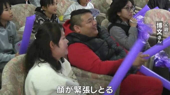 故郷・倉敷市ではパブリックビューイングが行なわれ、両親らが初陣を見守ります。