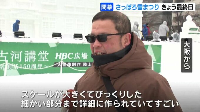 76回目を迎えた『さっぽろ雪まつり』。最終日の11日も、大通7丁目会場の「HBC広場」には多くの市民や観光客が訪れ、圧巻の大雪像を写真におさめていました。