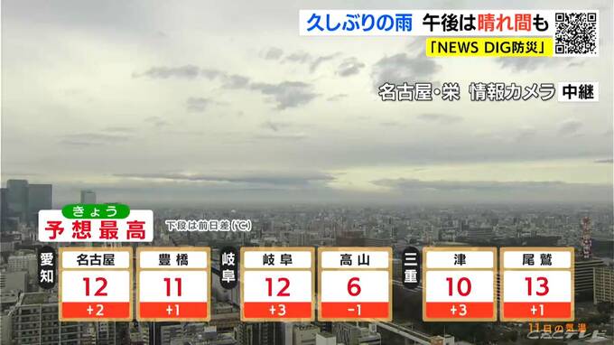 きょうの午後は次第に雨はやむでしょう。岐阜県の山地では夜まで雪の続く所がある見込みです。