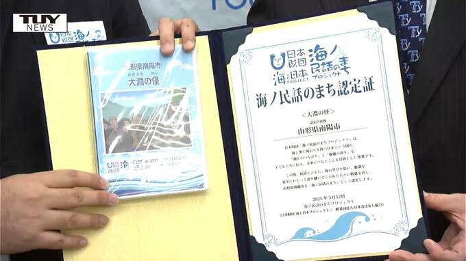 今月6日、南陽市の白岩市長に手渡されたのは、南陽市が舞台の民話をアニメ化した作品「大淵の怪(おおぶちのかい)」です。