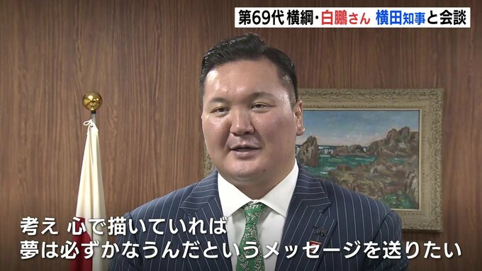 相撲を通じて地域の活性化をはかろうと、第69代横綱の白鵬さんが、広島県の横田知事と会談しました。