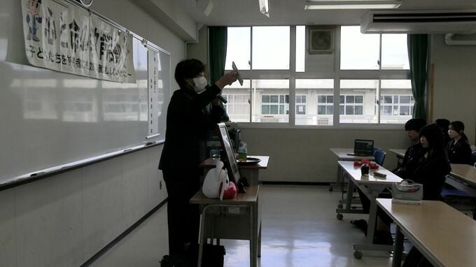 秋田さんは、講演を聞く生徒たちに優しく語りかけました。