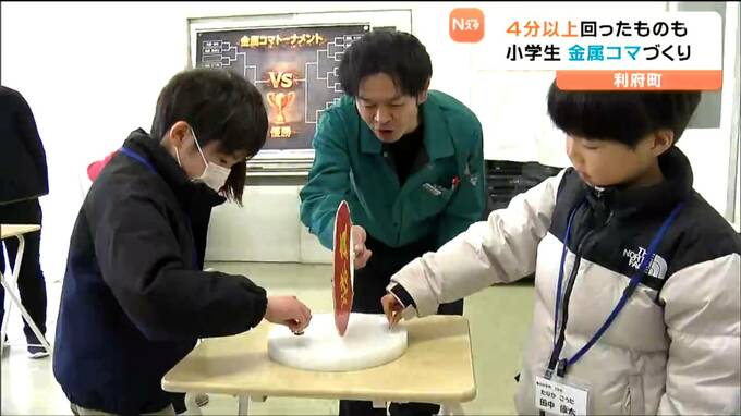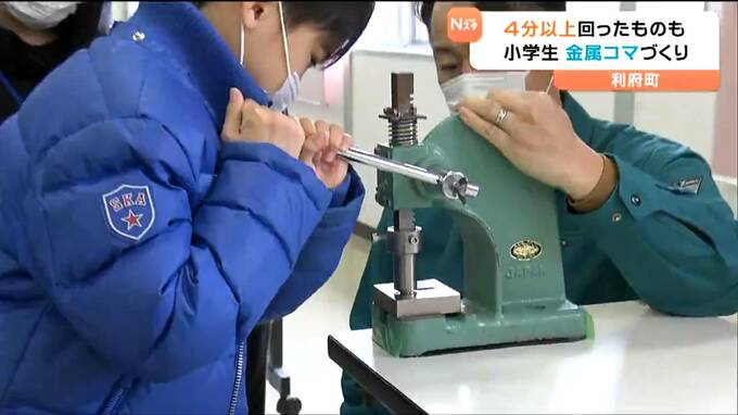 利府町の小学生が金属コマ作りに挑戦し、地域の人たちとの交流を深めました。