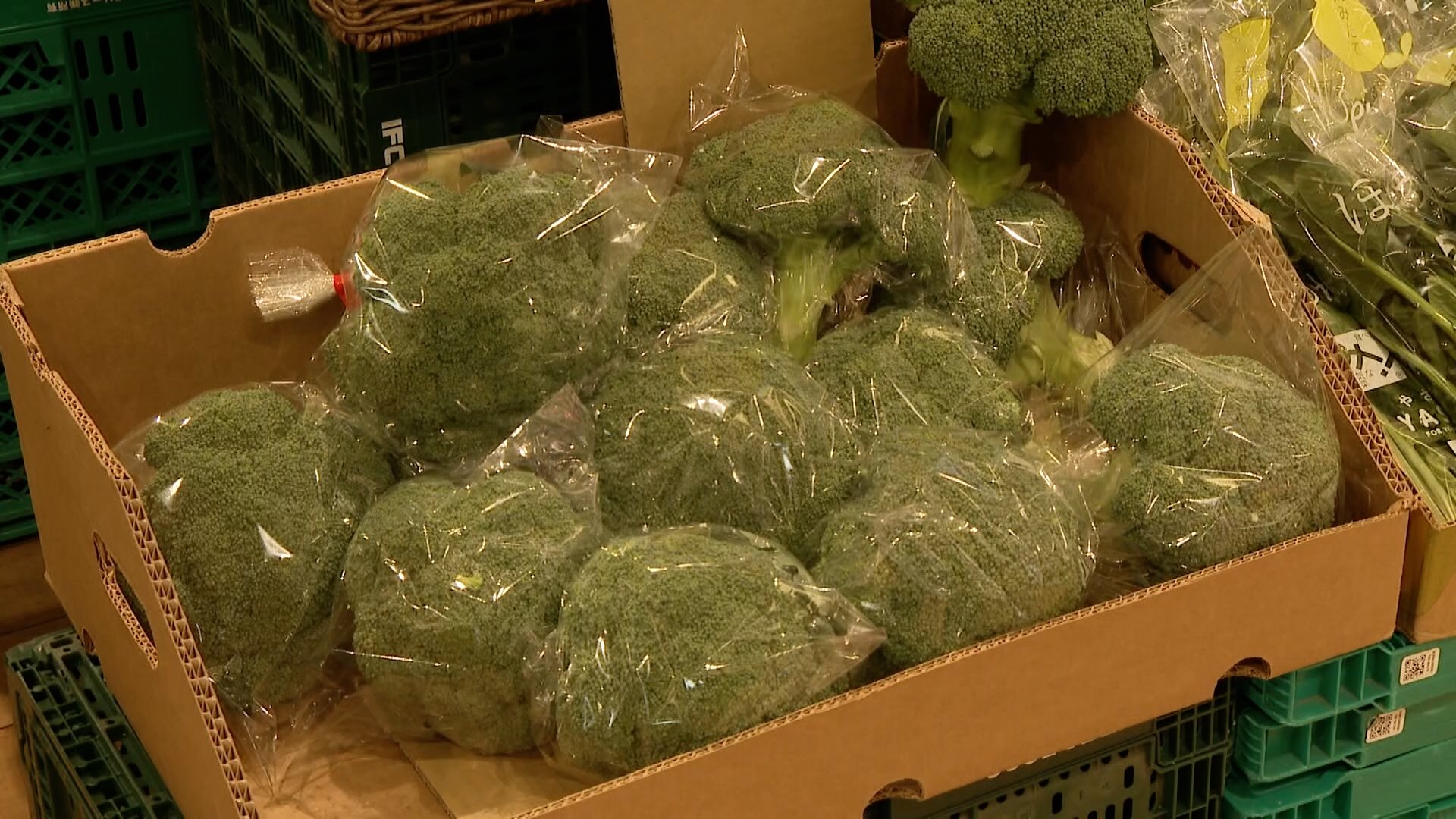 「福岡市西区の青果店です。ブロッコリーは3種類ありまして、1本160円程度で販売されています」