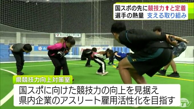 「県競技力向上対策室」は国スポに向けた競技力の向上を見据え、青森県内企業によるアスリートの雇用の活性化をめざすとともに、その橋渡しとしてスポーツ指導員として直接雇用も実施し、現在は陸上やウエイトリフティングなど18競技44人がこの制度で競技力向上対策本部所属となっています。