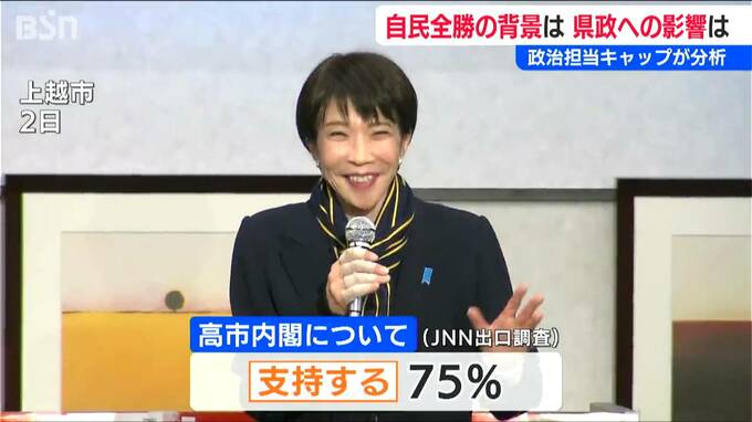 全国のニュースネットワーク・JNNの出口調査でも、「高市内閣を支持する」と回答した人は全体の75%にのぼりました。