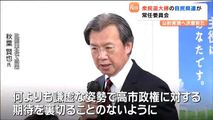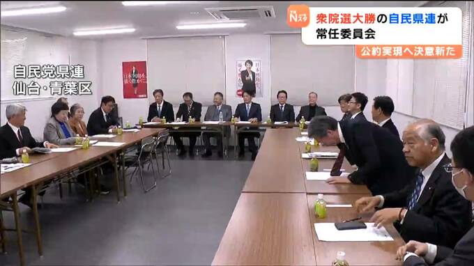 衆議院選挙で県内5つの小選挙区全てを制した自民党県連は11日、常任委員会を開き、当選者らが公約の実現に向けて決意を新たにしました。
