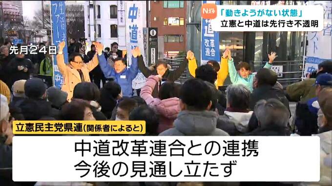 立憲民主党県連の関係者によりますと、党に留まった議員の処遇が決まっていないうえ、中道改革連合自体の今後の見通しも立っていません。そのため県連としては「動きようがない状態」だということです。