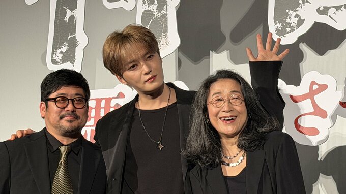 アーティストで俳優のJAEJOONG(ジェジュン)さん、木野花さん、熊切和嘉監督が11日、映画『神社 悪魔のささやき』公開記念舞台挨拶に登壇しました。