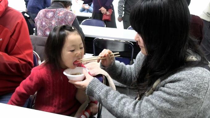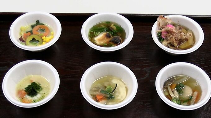 今年は山菜入りで具だくさんな北海道風をはじめ、餡入り餅が特徴の香川風など6種類が用意され、訪れた人たちは食文化の違いに触れながら食べ比べていました。
