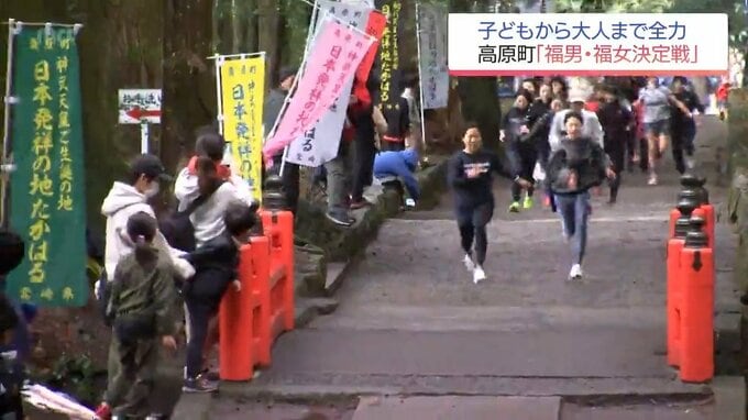 神社の参道を参加者たちが駆け抜けました。高原町の狭野神社で行われたのが「福男・福女決定戦」です。今年の福をつかむための熱き戦いに密着しました。直線の参道としては日本一長いと言われている高原町の狭野神…