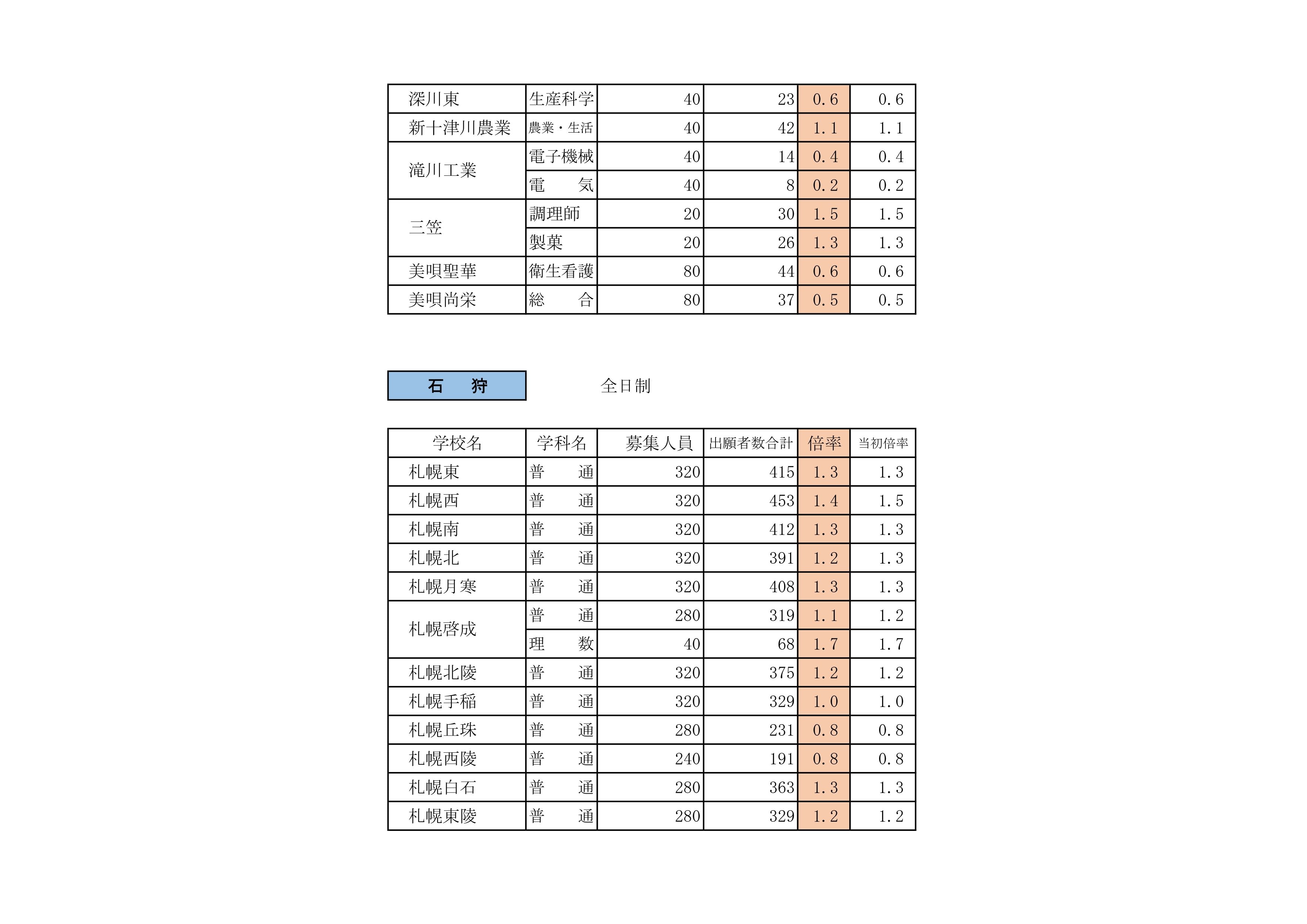 【最新】【北海道公立高校】【志願倍率】2026年 出願変更後の最新状況 最高倍率は札幌国際情報の1.8倍 札幌南1.3倍・札幌北1.2倍・札幌西1.4倍【全校・全科掲載】 北海道放送 2026年2月12日(木) 14:02 国内 【空知・石狩】最新の出願倍率