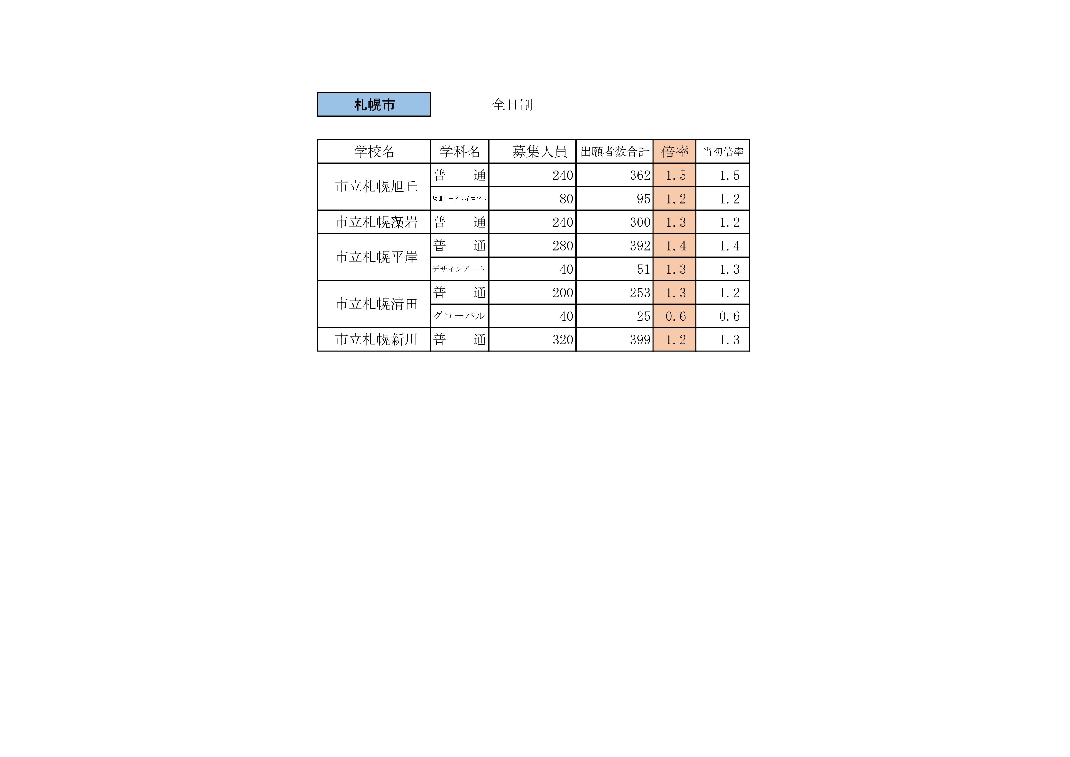 【北海道公立高校】【志願倍率】2026年 出願変更後の最新状況 最高倍率は札幌国際情報の1.8倍 札幌南1.3倍・札幌北1.2倍・札幌西1.4倍【全校・全科掲載】 北海道放送 2026年2月12日(木) 14:02 国内 【札幌市立】最新の出願倍率