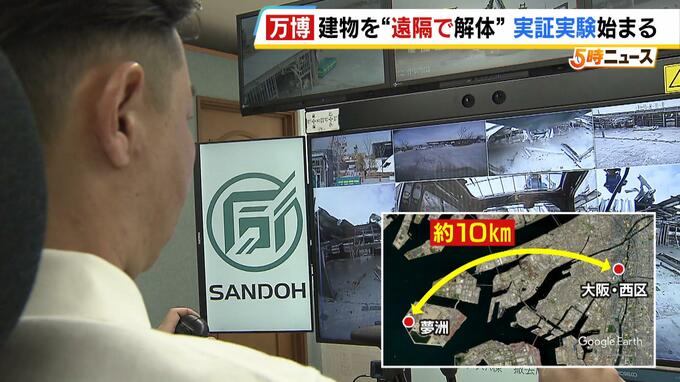 重機を操縦している人がいるのは大阪市西区の本社の会議室。万博会場からは約10km離れています。